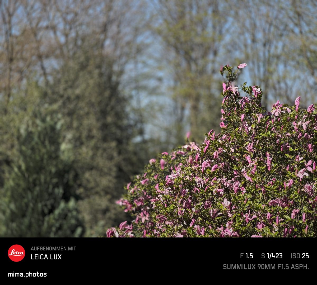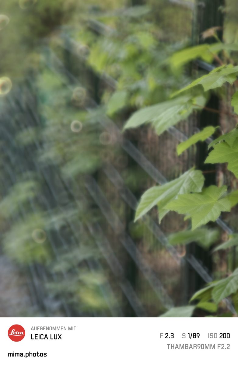 Das Thambar hat F2.3 als kleinste Blende, das Summilux F1.2 als kleinste Blende, dann F1.4, F2 und F2.8. Daher habe ich die Blende so gewählt, daß es ähnlich ist.